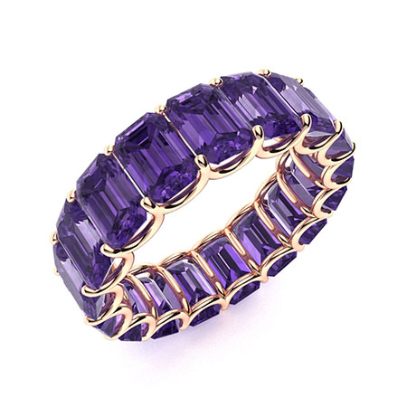 Diamondère, Ewan Emerald-cut Amethyst Wedding Ring in 14k Rose Gold (9.35 carats total weight