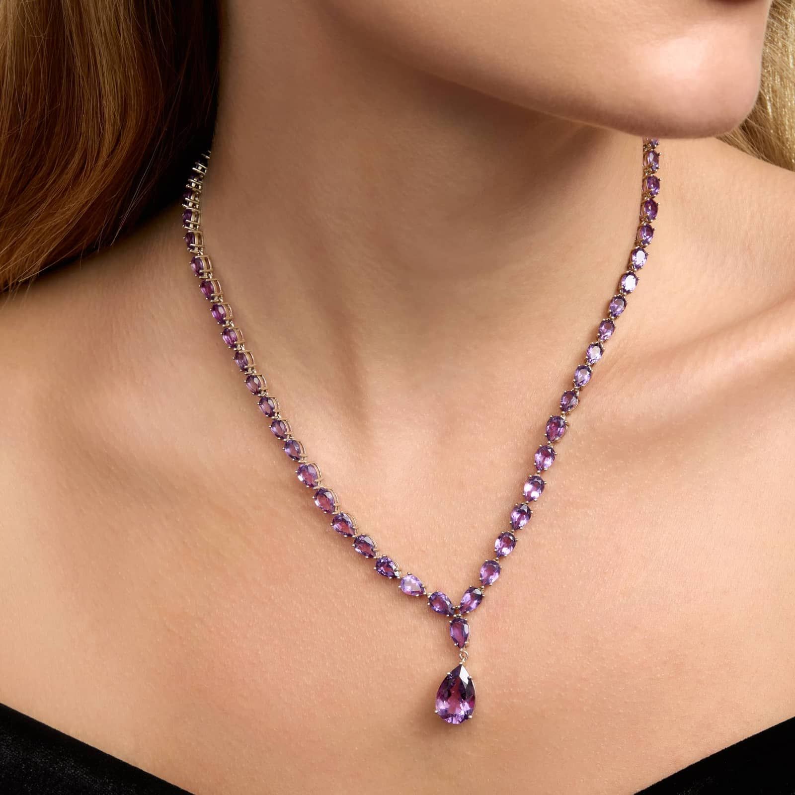 Blue Nile, Amethyst Drop Necklace in Sterling Silver