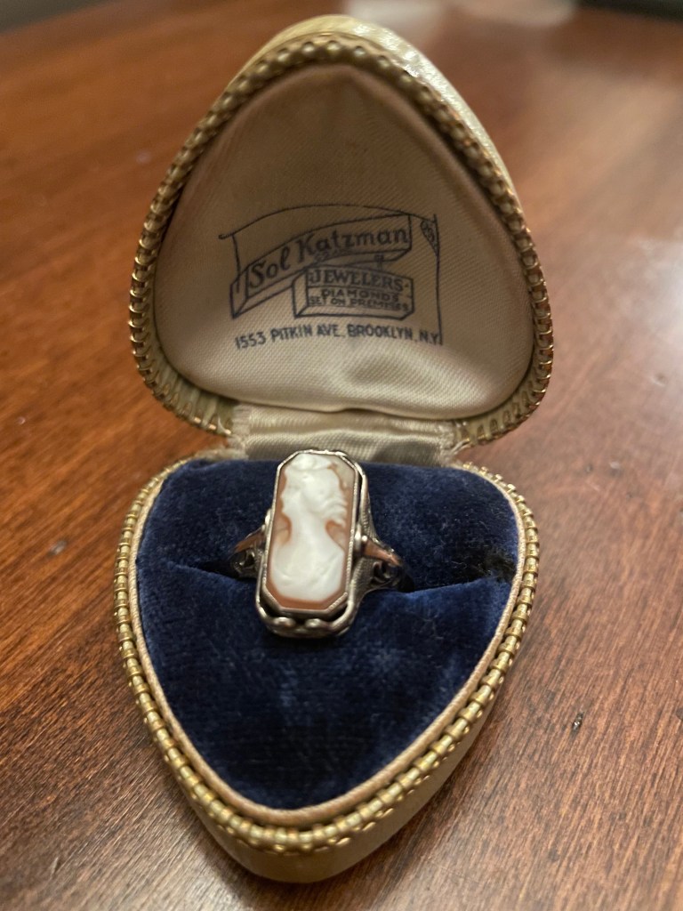I have included an image of my maternal grandmother’s gold cameo ring that has been in my family for many years. This ring will always remind me of my grandmother and how much she appreciated exquisite things.