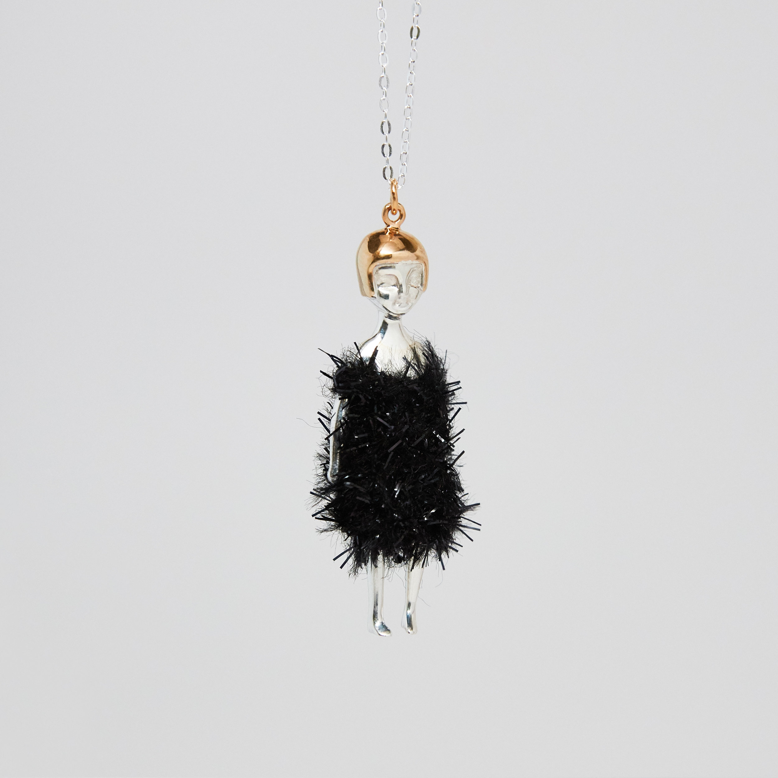 Queenie Cao Jewelry DOLL NECKLACE WITH BLACK FUR