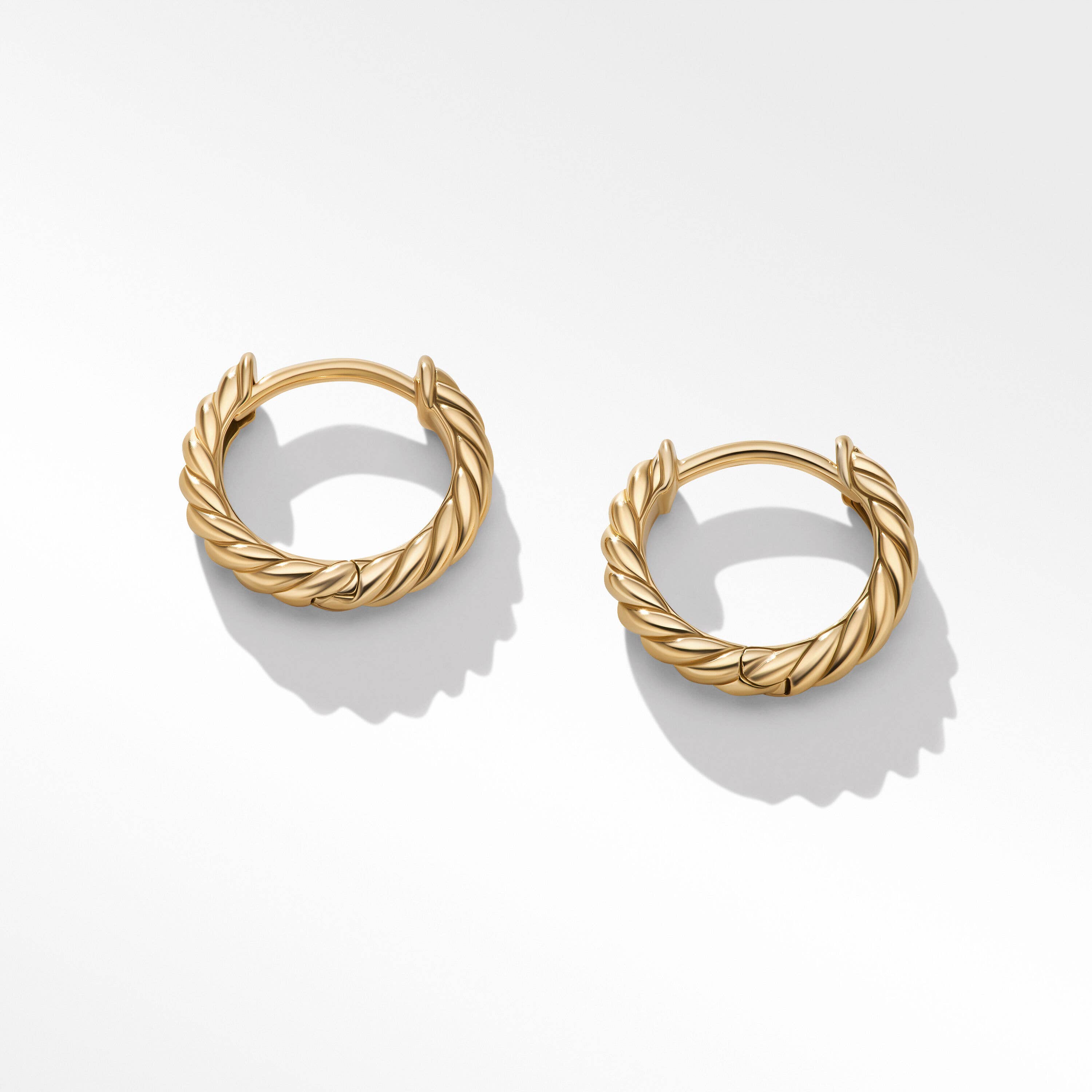 David Yurman, Sculpted Cable Huggie Hoop Earrings in 18K Yellow Gold