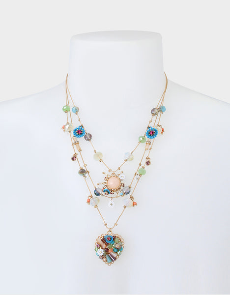 Betsey Johnson, BETSEYS MIXED MULTI FLOWER HEART ILLUSION NECKLACE MULTI