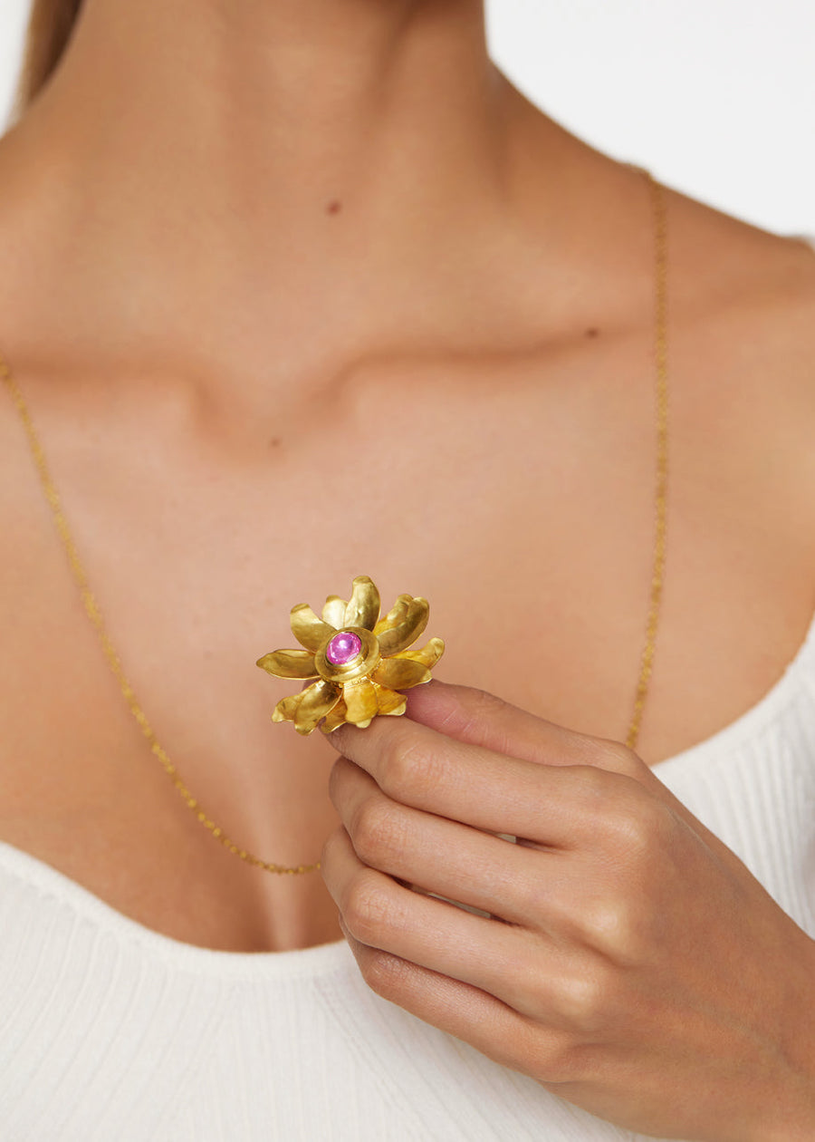 Pippa Small, 18kt Gold Opening Closing Flower Pink Sapphire Necklace